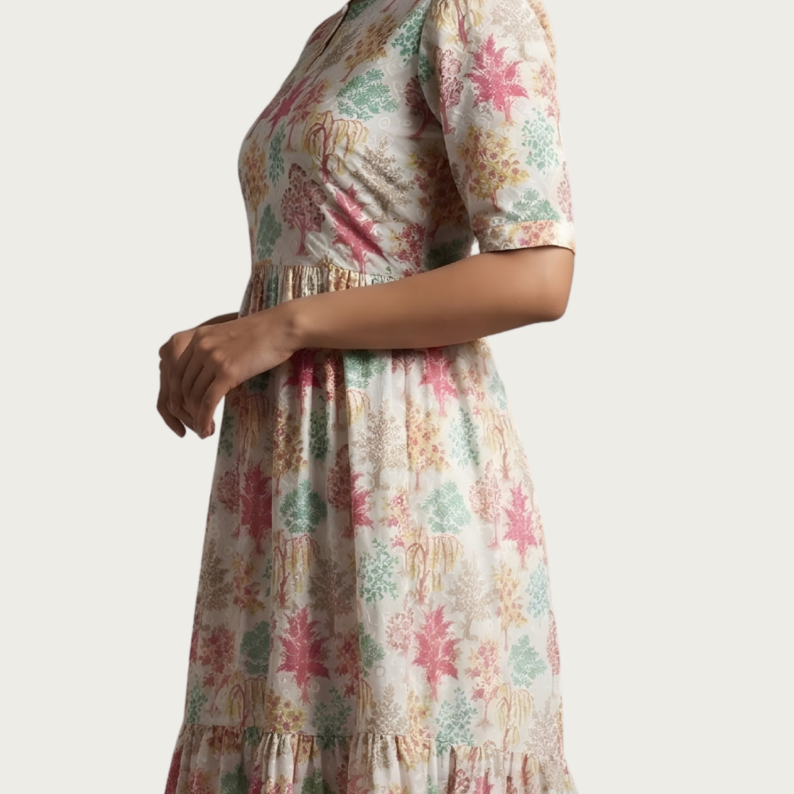 - Flowy tiered design adds grace and comfort