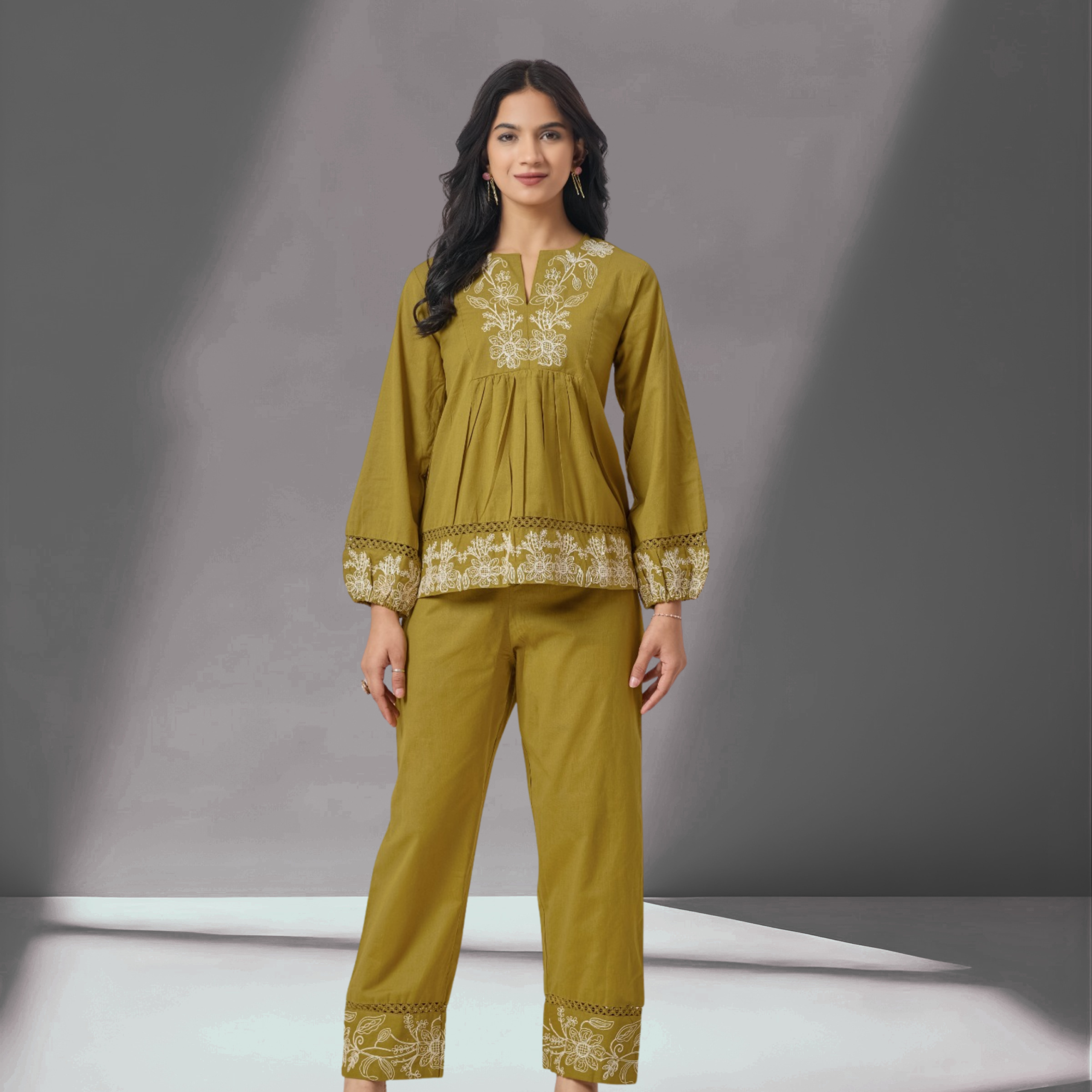 Embroidered Cotton Co-Ord Set – Stylish Top & Pant Combo