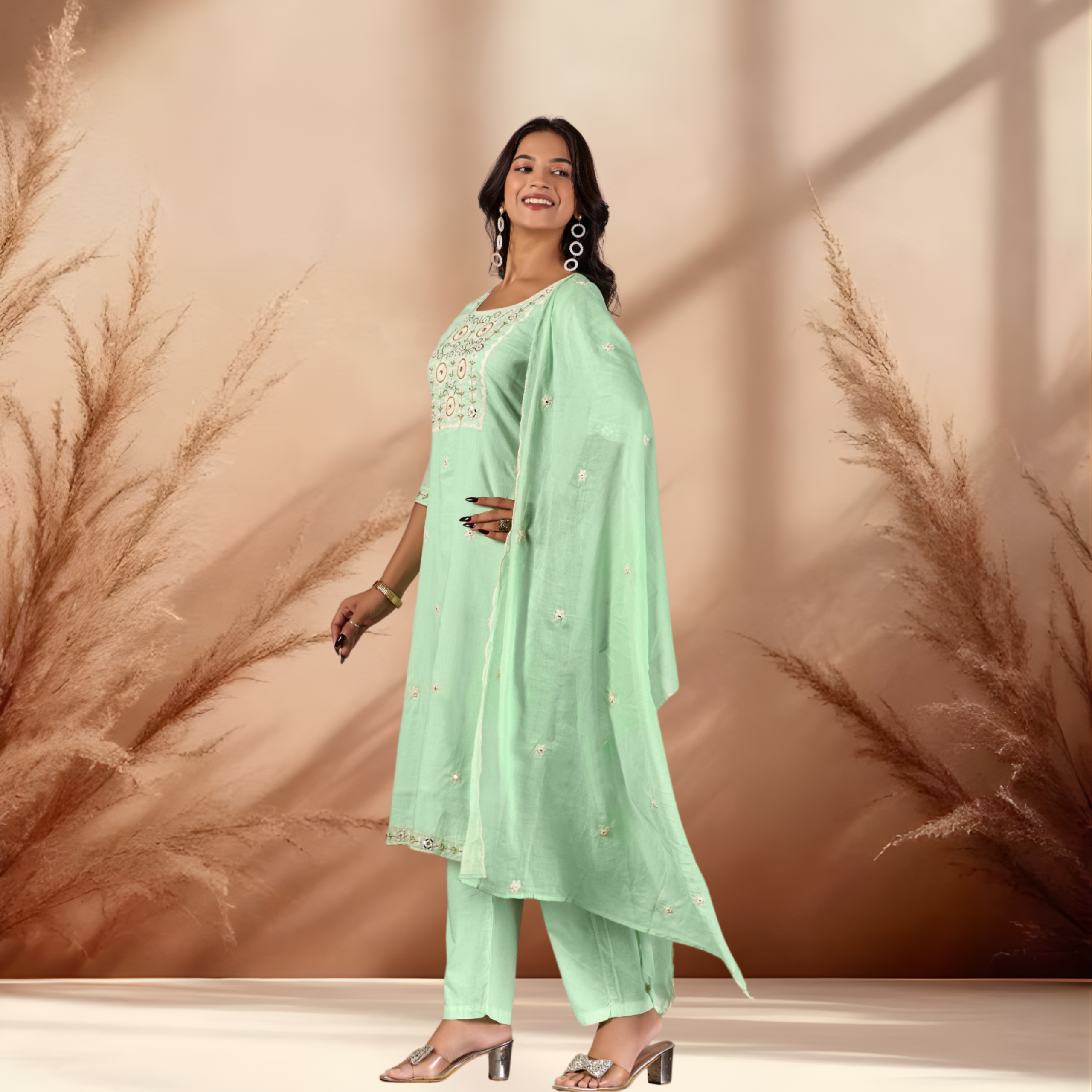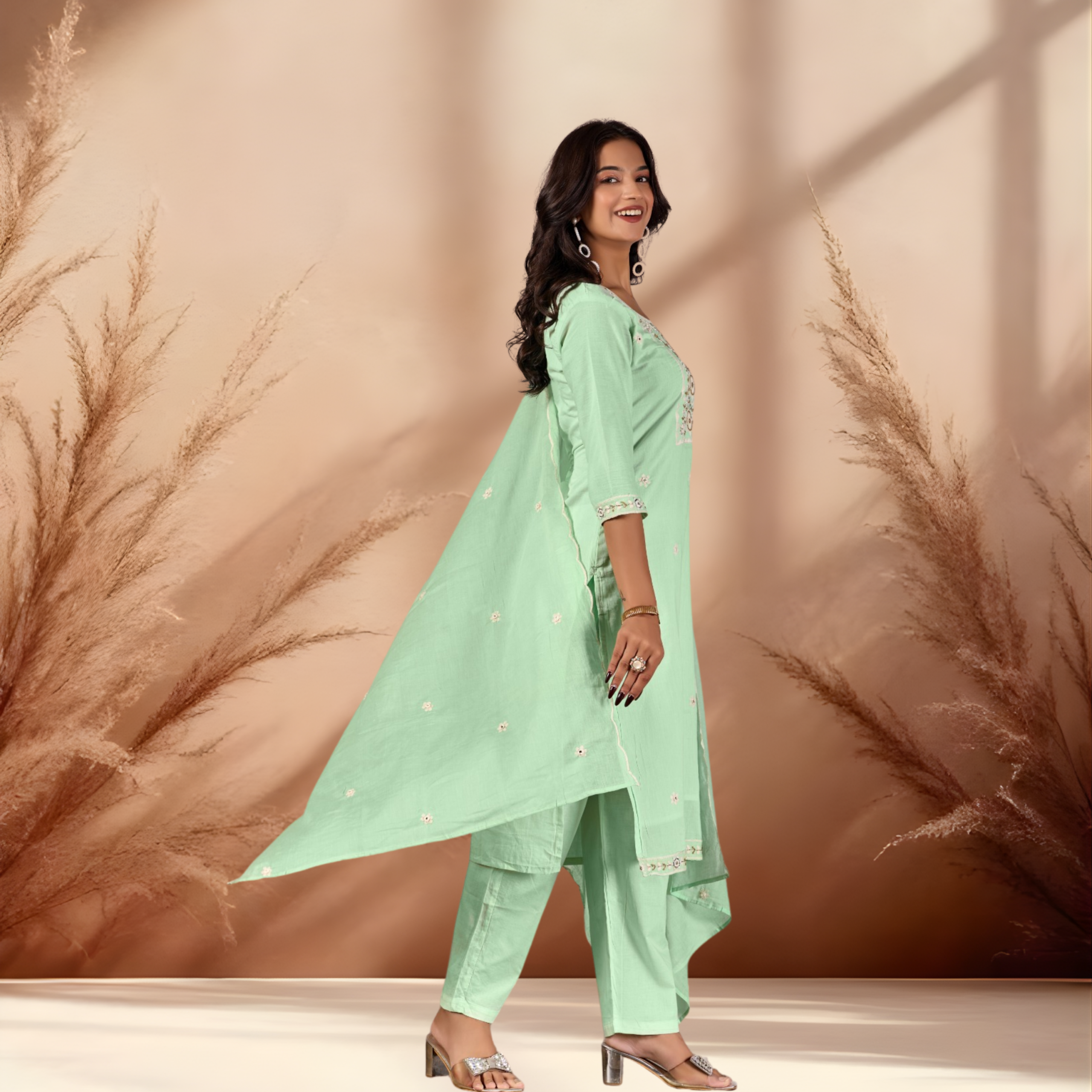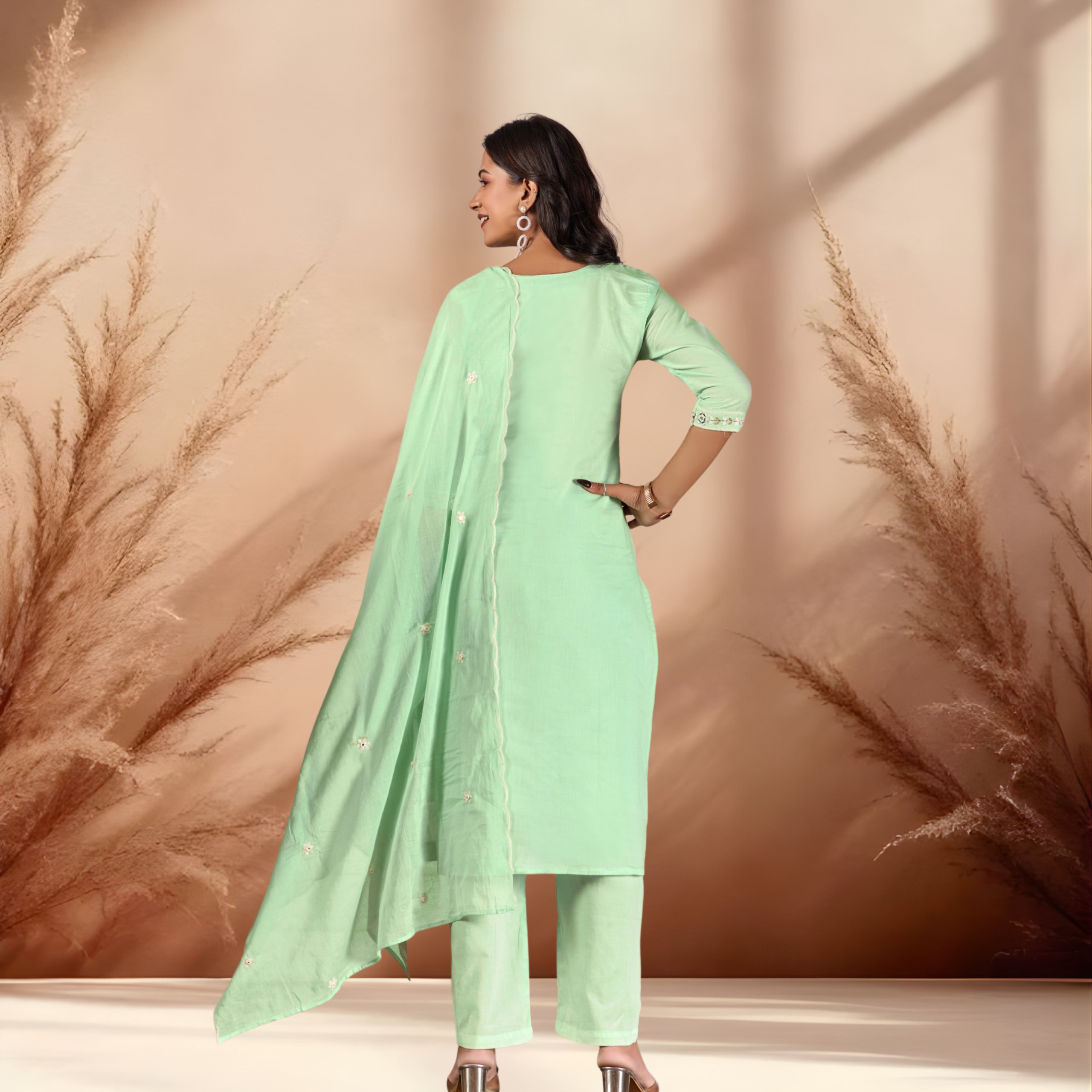 Versatile Dupatta: Includes a lightweight, matching cotton dupatta that drapes effortlessly over the shoulder or arms.