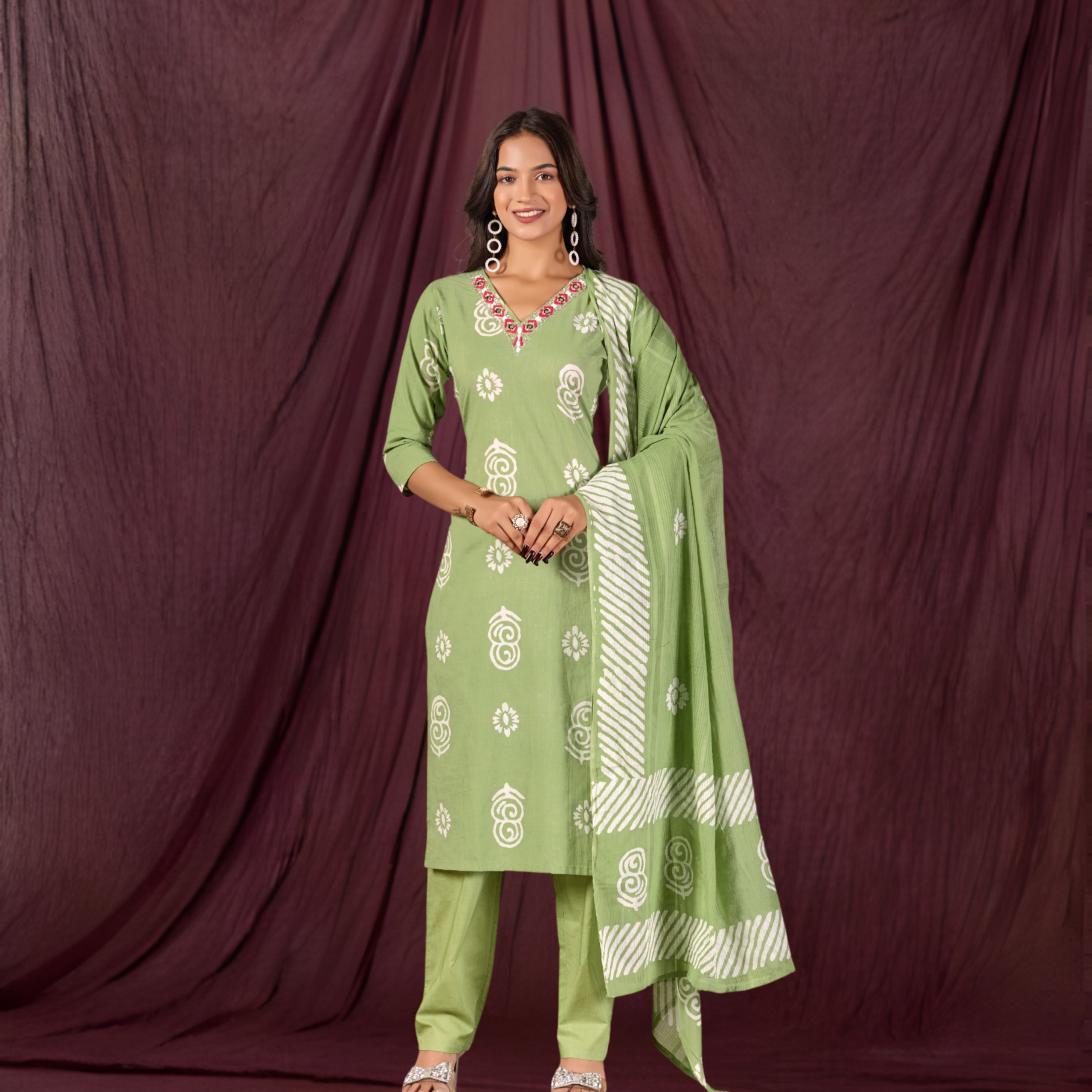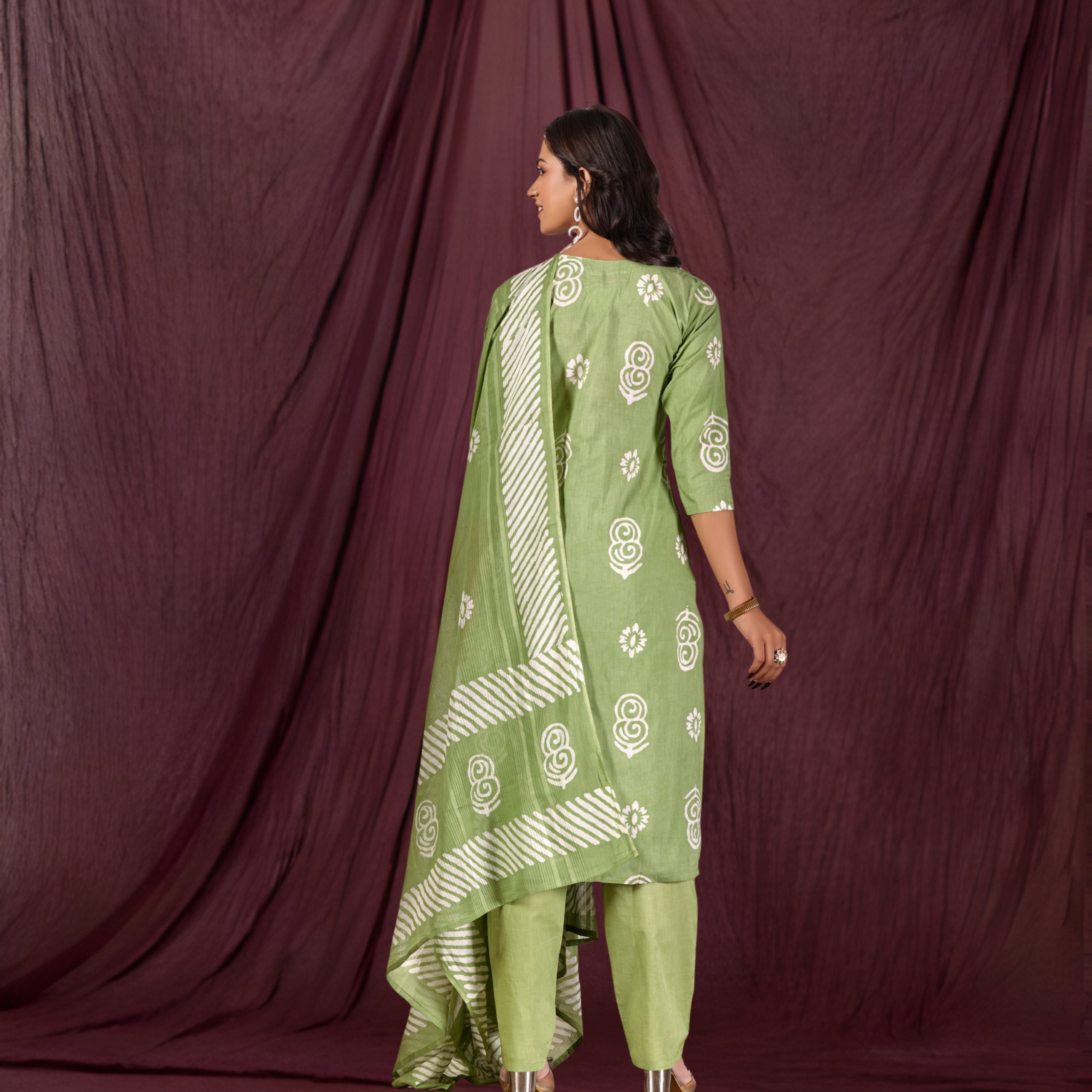 Women’s Pistachio Green Pure Cotton Batik Print Suit Set