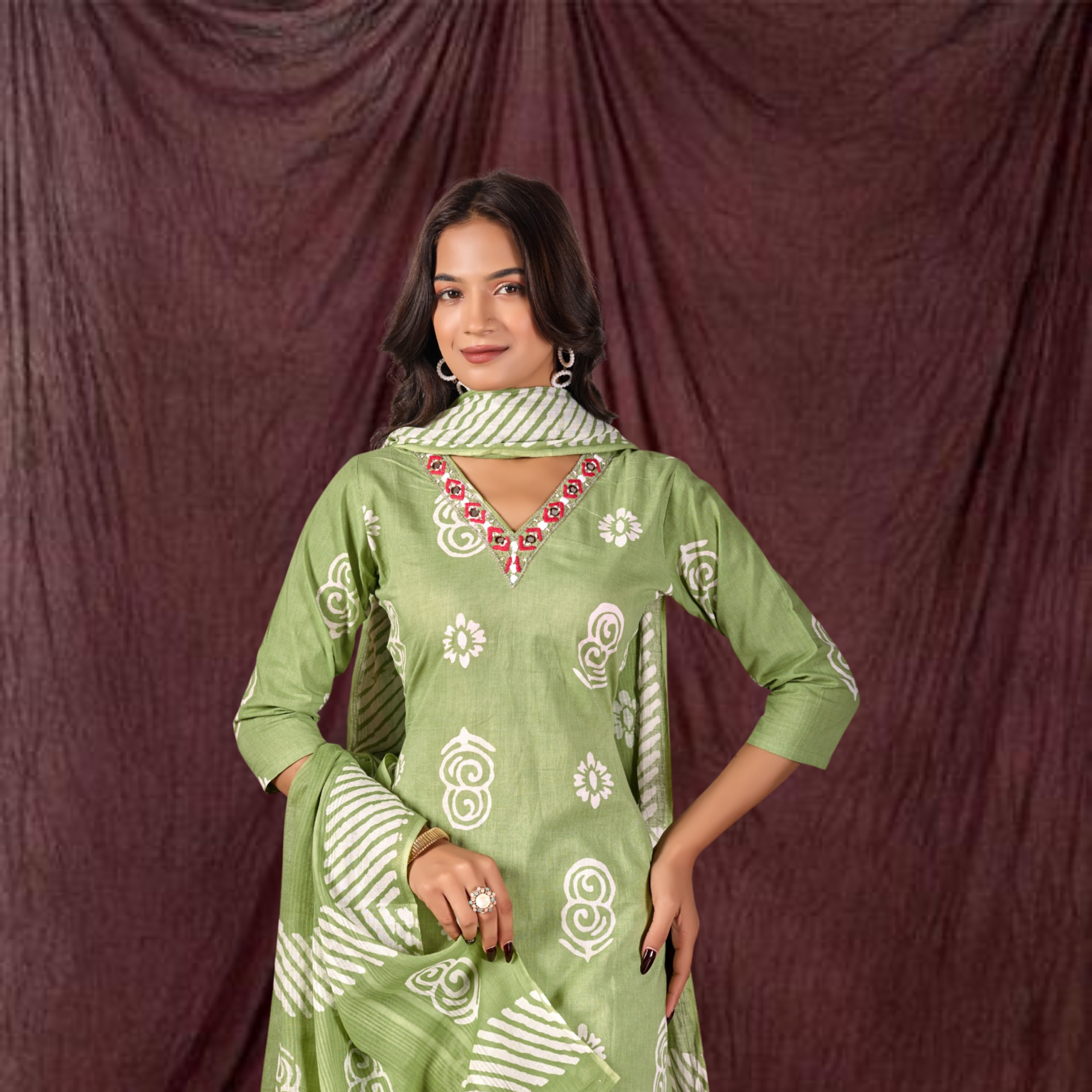 Color: Pistachio Green with White Batik Prints